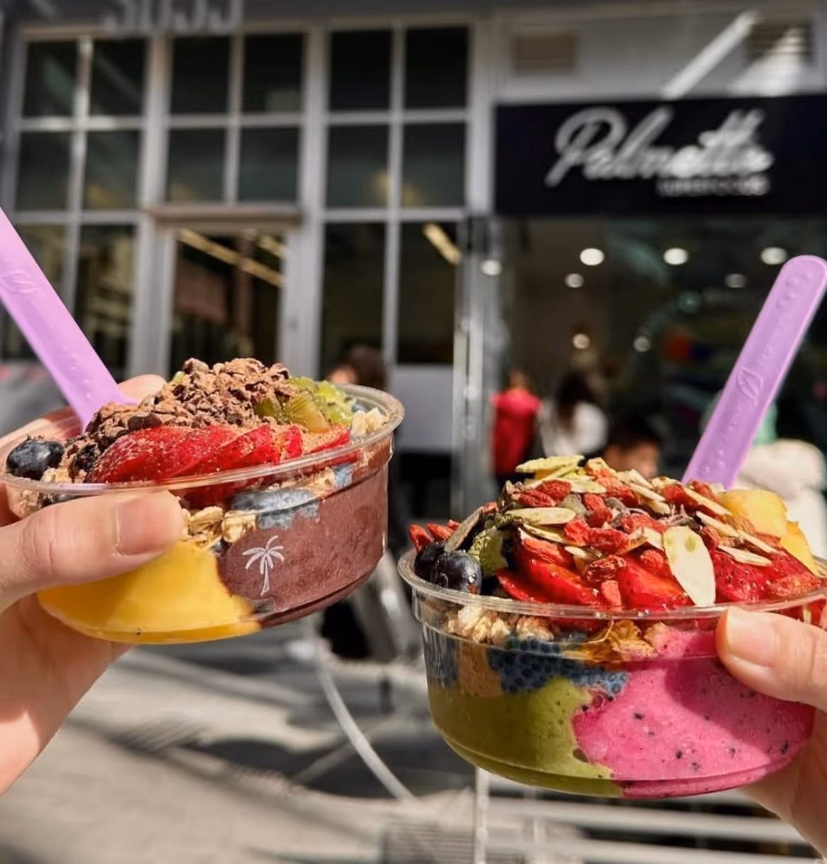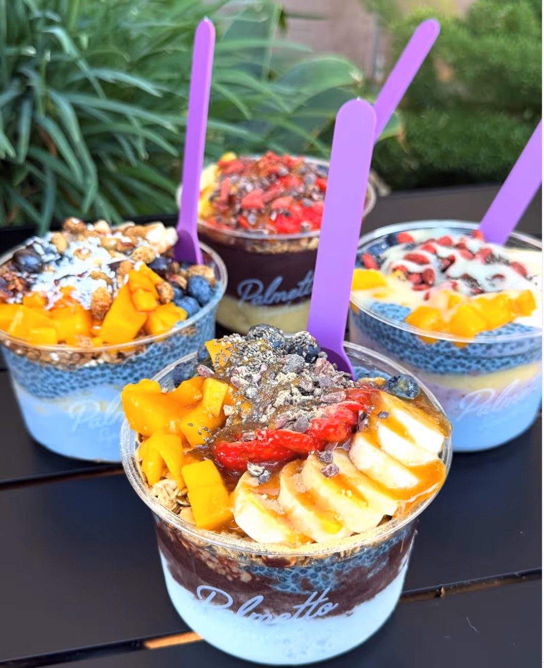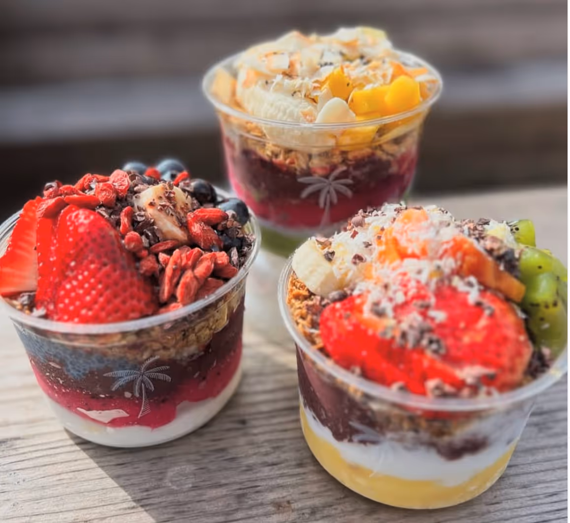 Personalized açai and pitaya (dragon fruit) bowls and smoothies are the focus of a quick-service eatery at Corte Madera’s Town Center. Bowls, available in 8 oz. ($8.95), 16 oz. ($12.95) and 24 oz. ($15.95), can actually start with a base layer of blue butterfly pea flower chia pudding, cinnamon steel cut oats, or one of five other bases. Add in layers of granolas (four styles, including gluten-free), fruits (seven choices), and finishes (24 choices, including matcha powder, cacao nibs, and goji berries), and you have a hydrating, powerhouse meal.