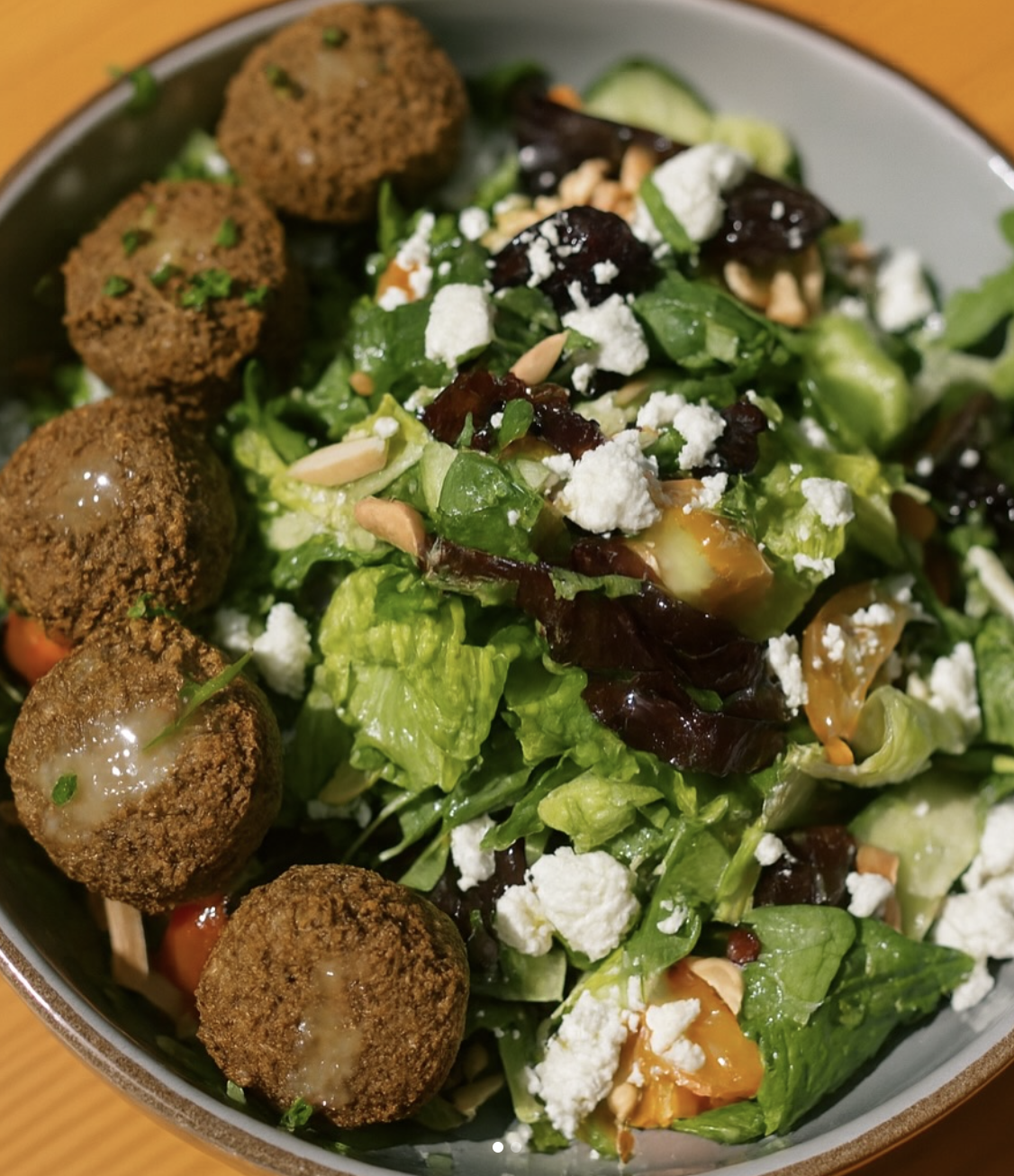 Newton’s focus on high-quality ingredients shines on the afternoon-to-evening menu. A savory or sweet gluten-free pizza – like Pepperoni with Mushrooms or Dubai Chocolate Deluxe – is a good way to start before considering a power shake, grilled open faced toasts (including The Italian and a PB&J), boards of cured meats and cheeses, and salads like Mediterranean Chickpea or Almond Parmesan Crunch.